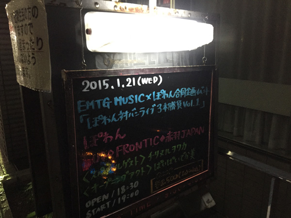 Shelter3ヶ月連続ライブの1回目、対バンは『LUI FRONTiC 赤羽JAPAN』に『チリヌルヲワカ』、オープニングアクトは『ぱいぱいでか美』というラインナップ。【下北沢にて’14】ではほとんど何も見れていなかったに等しかったため、実質ぽわんのライブを初めて見ることに。