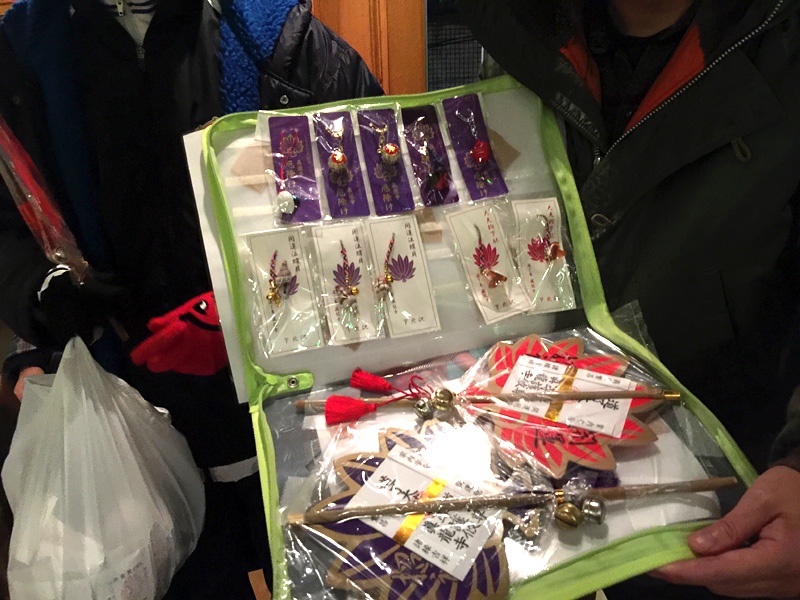 縁起物の数々、私も毎年縁起物のうちわ型のお札を頂いてます
