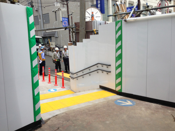 開通直前、抜け駆けできないように見張りの人がおります(無駄に大げさ)。