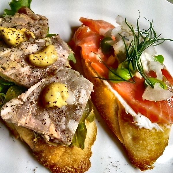 一皿メニュー:自家製パテ・ド・カンパーニュとスモーク