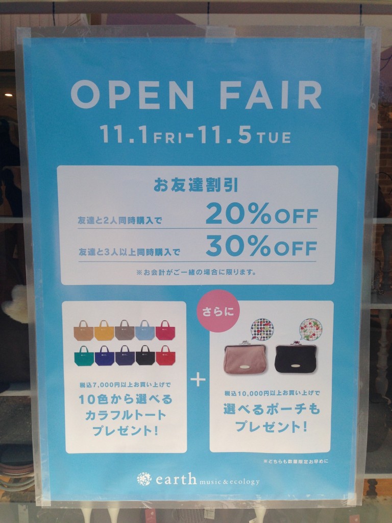 11/1earth music&ecologyが下北沢北口にOPEN!お友達とお買い物で30%OFF!?
