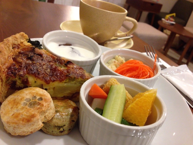 今日の手作りキッシュはかぼちゃとさつまいも。これがとても美味しい!!2個ついてくるスコーン(今日はプレーンと抹茶)も美味しい!!え、自家製のピクルスもすごい美味しい!!え、その横のデリも美味しい!!わ!!紅茶のゼリーも美味しい!!(全部やん)