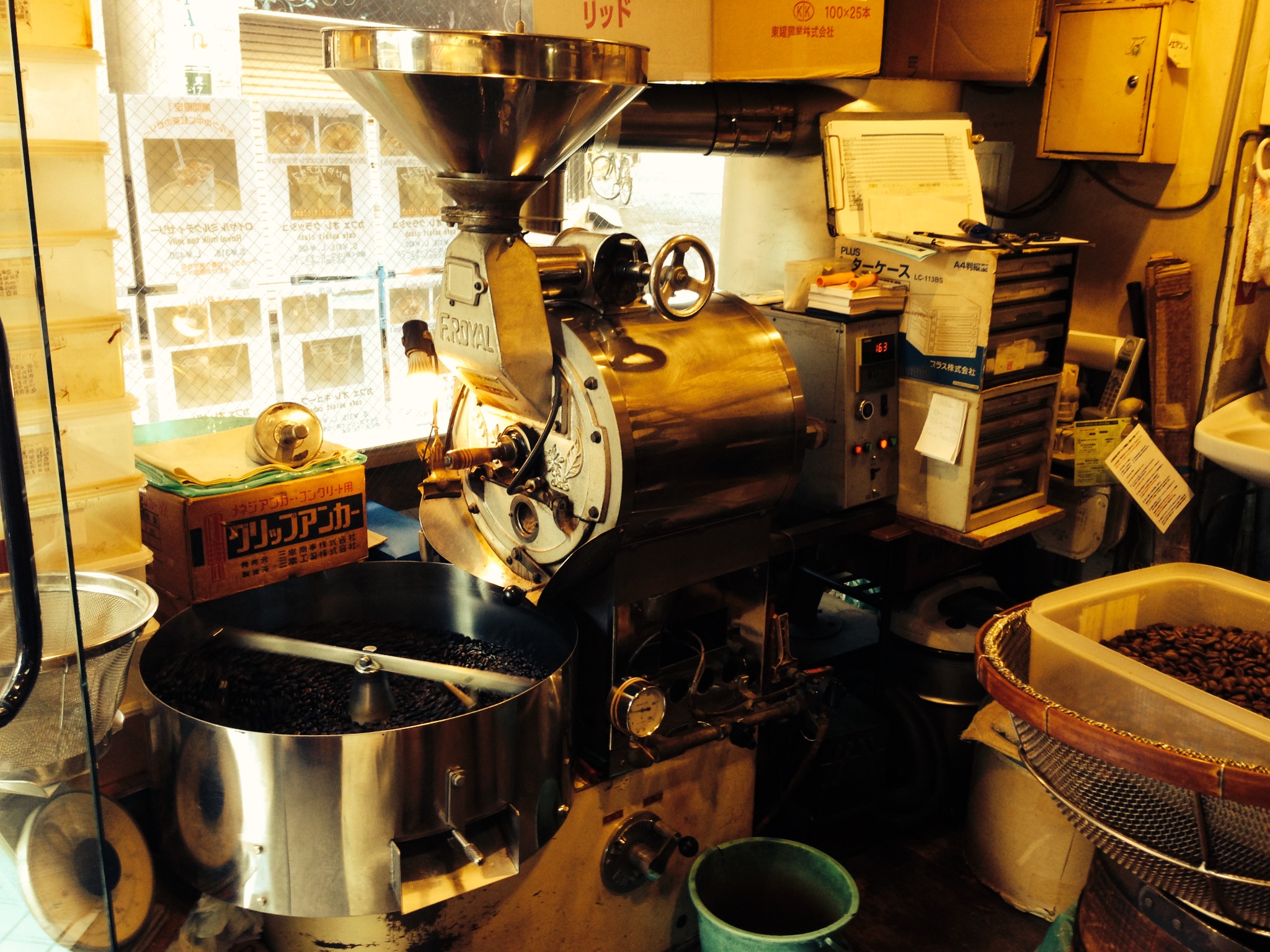 コーヒーの焙煎機がぐるぐる回っていました。たまらない香りに包まれます。