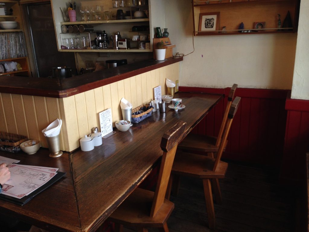 カウンターには小さなピアノ、窓際や壁には音楽関係のフライヤーや曽我部恵一さんのポスターなどがあります。この日の音楽は、誰だったのだろう、このお店に合う、ゆるりとしたボーカルの音楽がかかっていて、心地がよかったです。