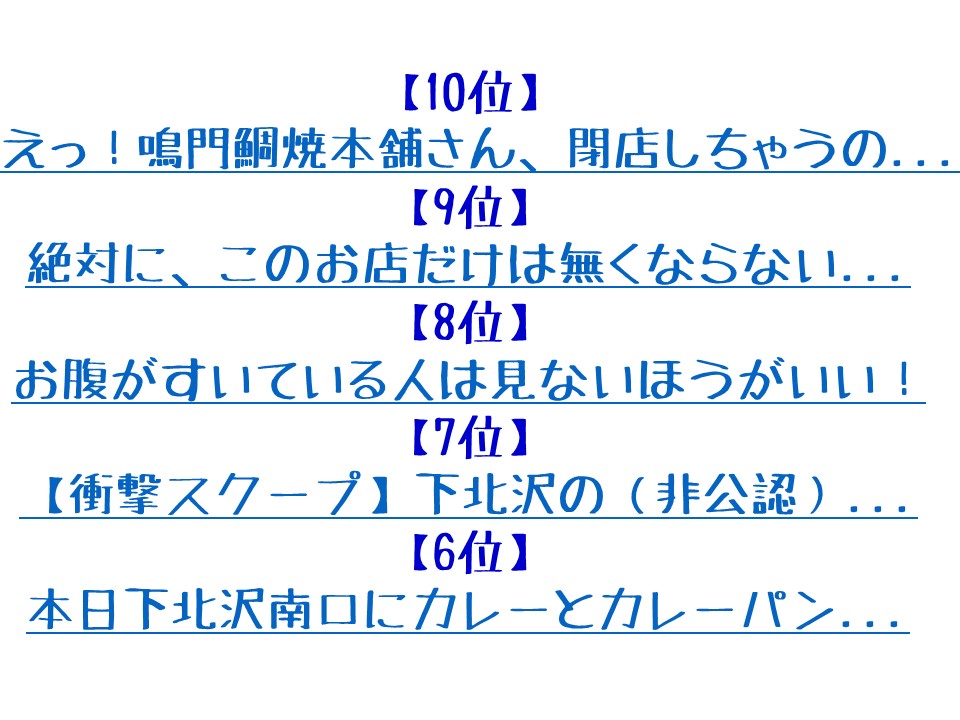 「下北沢ブロイラーでは、『ぶーふーうーさんの閉店』を1位とします」