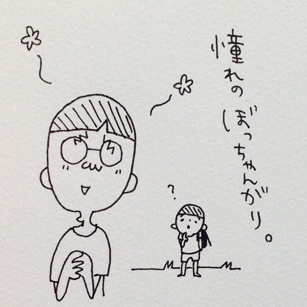 うちの眼鏡屋に、毎日のように遊びにくる男の子がいるんですけどね。彼ももう小学生になりました。最初に会った時はまだ乳母車乗ってたんですよ。そもそもの始まりは、彼のパパが眼鏡を買ってくれたところから。ちょろっと乳母車をのぞいたら、完璧に刈り上げられたお坊ちゃんヘアーの男の子がいたんです。もはや眉より脳天に近いラインで直線にそろえられた前髪と、その前髪から耳を抜けてまっすぐつながる見事な後頭部のあの衝撃。タ○ちゃんなのに、なんかめっちゃオシャレ!こここ、これがよく言う、「都会の一周まわったオシャレ感」なのか…!パパもママも、サングラスを小粋にかけこなしてるし、田舎者の私にしたらそのファミリーは、THE・下北沢の人たち、って感じだったわけです。わたしすっごく興奮しちゃって、すごいですねすごくいい髪型ですね、って店長と一緒に連発してましたね。そうそう……あの時ね、ちらっと聞こえてはいたんですよ・・・「すごいですね」の間に、「うらやましい」って店長の声がしたなって・・・。