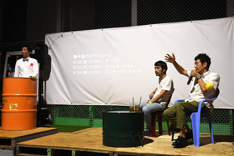 草彅さんの話を受け林さんから、「この場所は昼間は門が開き中には誰でも入ることができ、夕方からはお店がオープンし飲食をしながらコミュニケーションができる空間となる。飲食店でもあり街の広場でありイベントスペースでもある」という、これまでの下北沢にはなかった可能性について示してくれました。