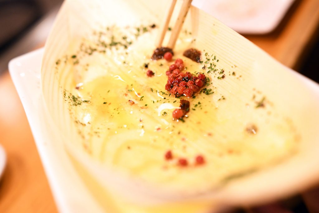 ばるばる限定のオリーブオイルと岩塩のたこ焼きは、オリーブオイルがたっぷりなのにさっぱり塩味でニューウェーブなたこ焼き。「想像以上にオリーブオイルがマッチして、なんだかヨーロピアン」、とタカユキさんもお気に入り。赤いツブツブはピンクペッパーで、ペッパーだから辛みがあるのかと思ったら、刺激はそこまででありませんのでご安心ください。