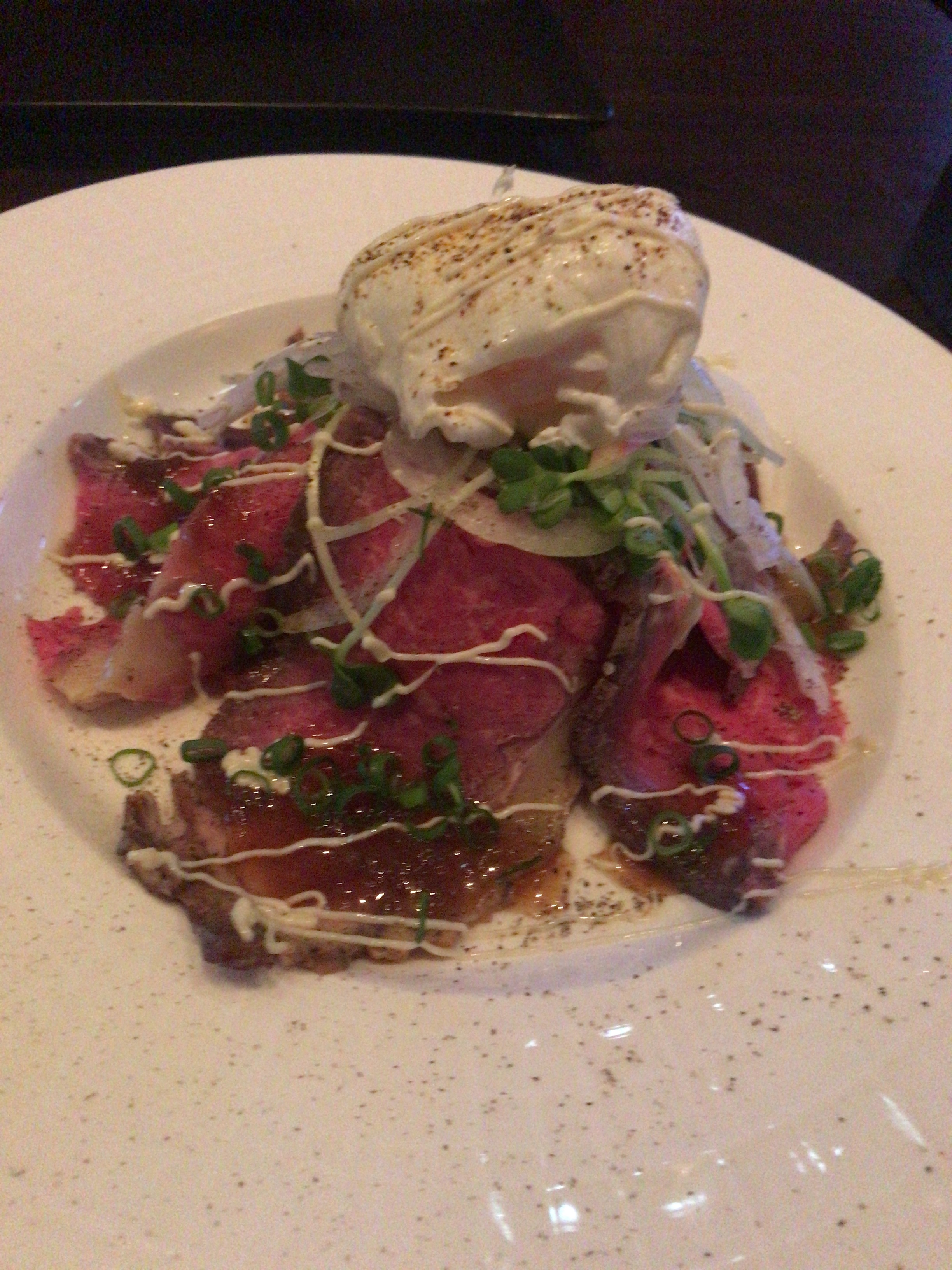 『IBIZAのローストビーフ~半熟卵とパルミジャーノ~』。テンションあがらないわけはないですよね!この量。そして美味しそう!