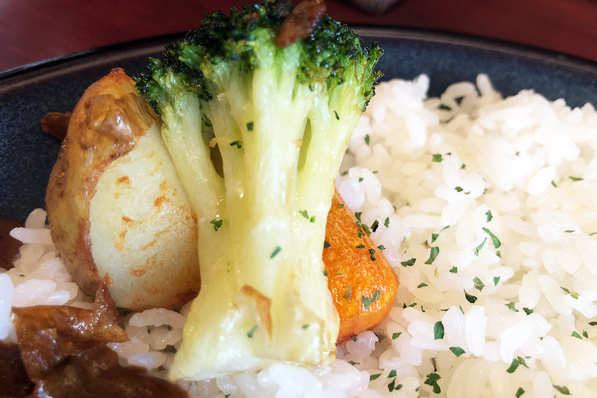 見た目は普通のカレーですが、一口食べてみるとコクの深さに衝撃を受けます。まかないのカレーと言うよりは、ホテルで出されるような手間ひまかけたこだわりのカレーの雰囲気。深くカレーのおいしさを存分に感じられつつ、ちょっと優しい味わいも感じられる不思議なカレーです。なんだかほっとしますね、このカレーは。