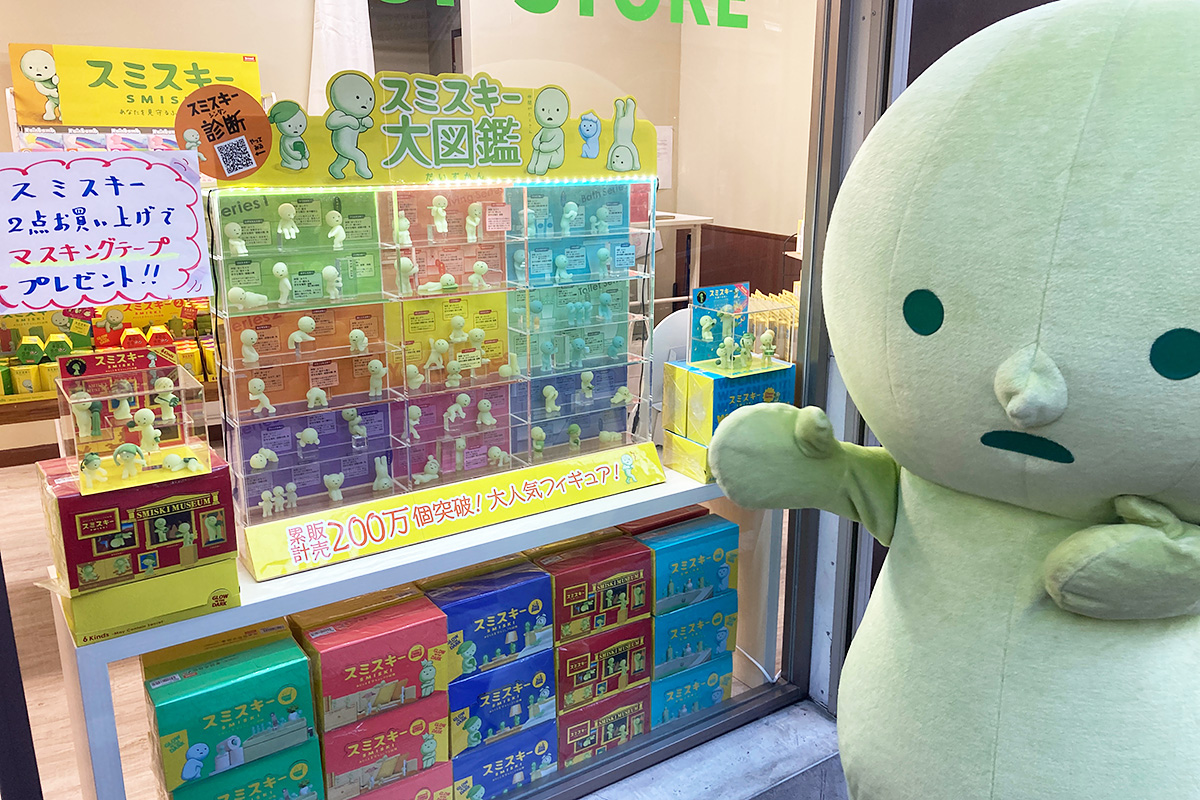週末にはスミスキーの着ぐるみも登場! この日は平日でしたが「スミスキー」に出会えたのでめっちゃラッキー。さらに土日は、お店でスミスキー商品を2個以上買うと、1会計につき1回抽選会に参加できます、非売品のぬいぐるみが当たるかも。