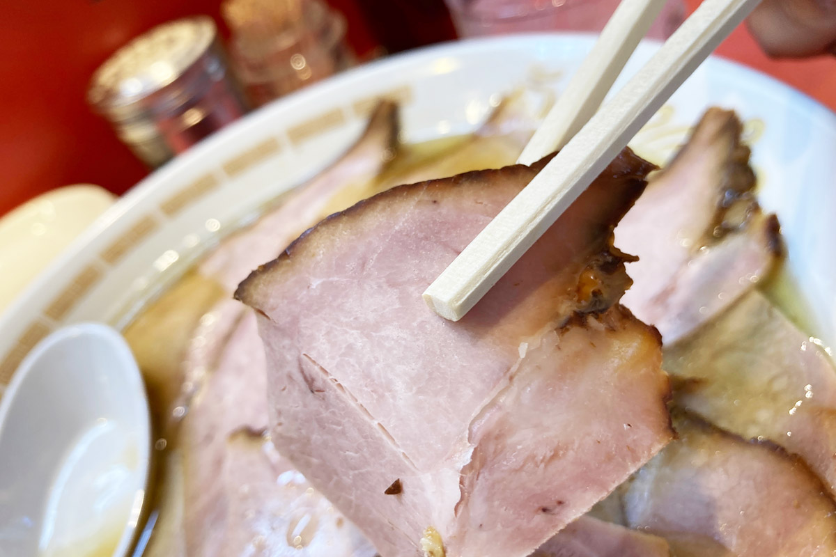丼一杯のチャーシューの下には黄金に輝くスープ。もう、ひたすら味わい、スープも全て飲み干す。