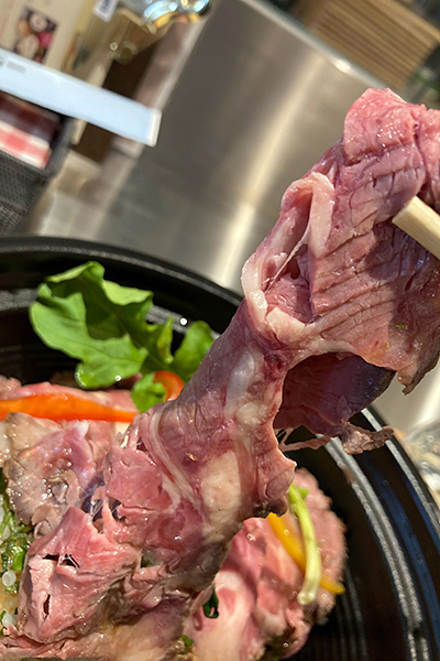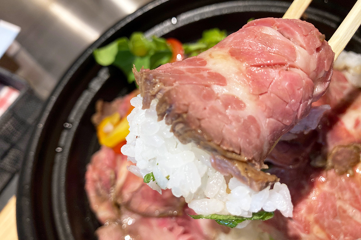 様々な大きさ厚さのローストビーフがたっぷり、そして、おこめもたっぷりでボリューミー。なんか、もう最後の方はギリギリの戦いを強いられました、すごいよホントにごはんの量が。