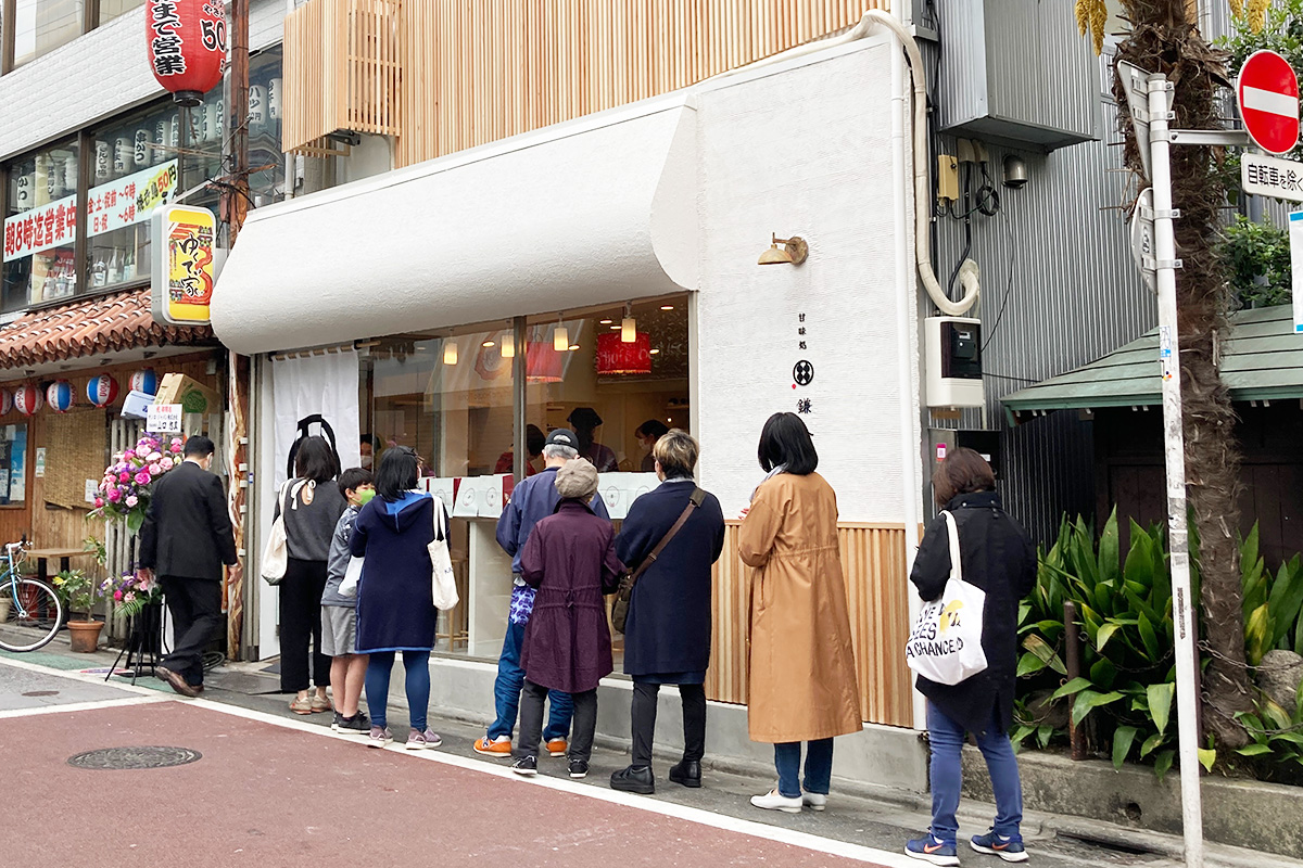 2021年4月16日(金)、下北沢南口商店街の庚申塚隣にわらびもち専門店『甘味処鎌倉』がオープンしました。オープン記念セールとして4月18日まで、通常710円の「わらびもち5個入」と「自家製黒みつ」のセットが390円になる事もあり、開店時間の12時にはわらびもちを買い求める列が餃子の王将を超えライブジュースさん脇の路地にまで及ぶ大行列になりました。