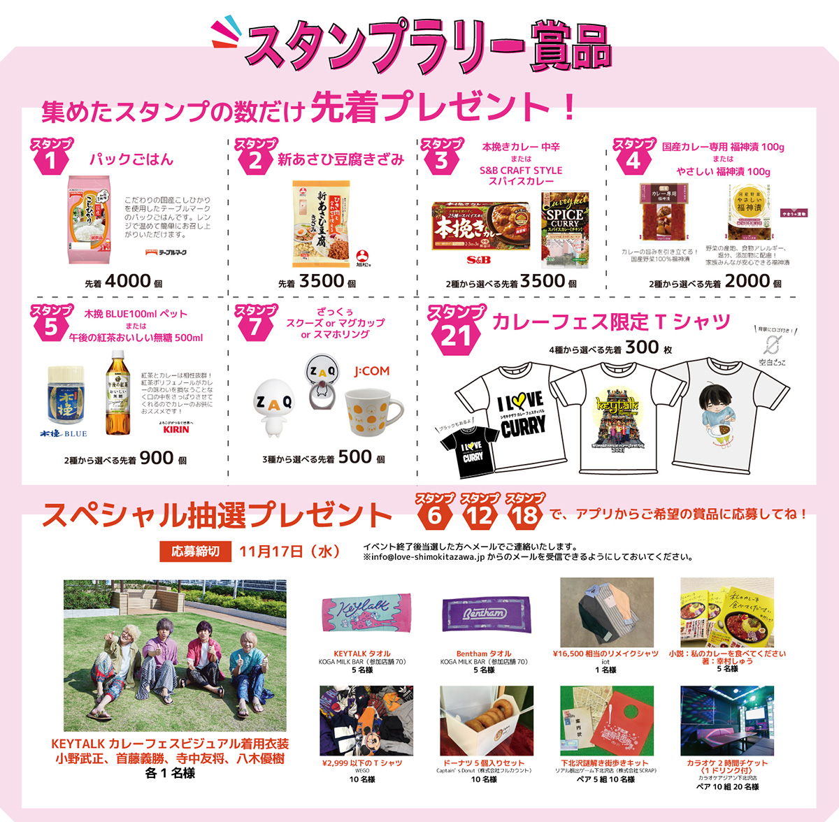 21スタンプ:4種類から選べるカレーフェス限定Tシャツ 各100枚など