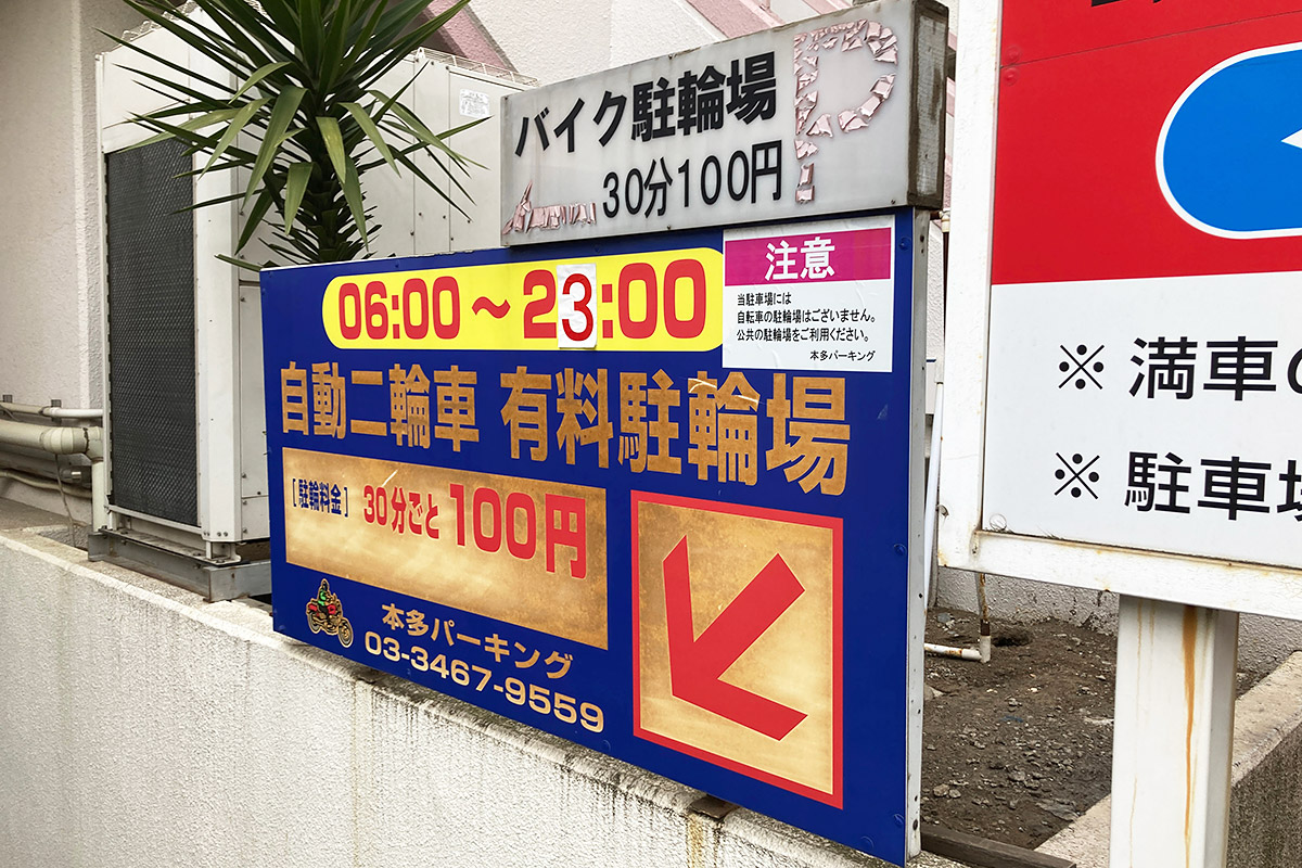 下北沢にはここにしかないバイクを置くことができる駐輪場、本多劇場の下にある駐車場に併設されています。