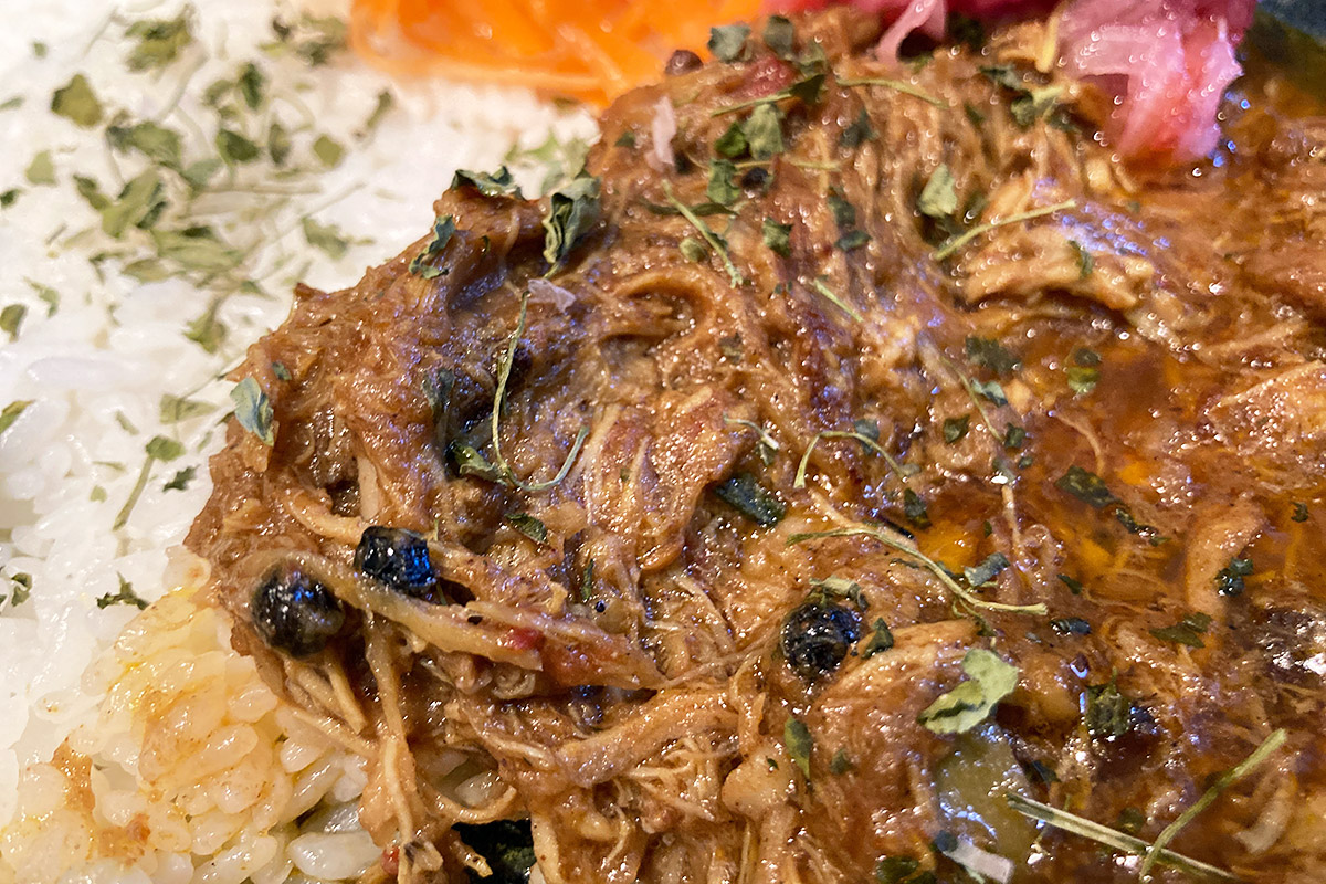 もう、一口で分かりますそのスパイス感。ホールのままで入っていることもありますが、かみ砕くとスパイスが口の中に一気に拡がり、ダイレクトにスパイスを味わうことができます。もちろんスパイスだけでなく、柔らかく煮込みほぐされた鶏肉と玉ねぎの甘みが融合し、とーってもおいしいカレーに仕上がっています。カレー自体の辛さはそこまでではないのですが、スパイスがふんだんに使われているのでじんわりと汗ばむ刺激がたまらないです。