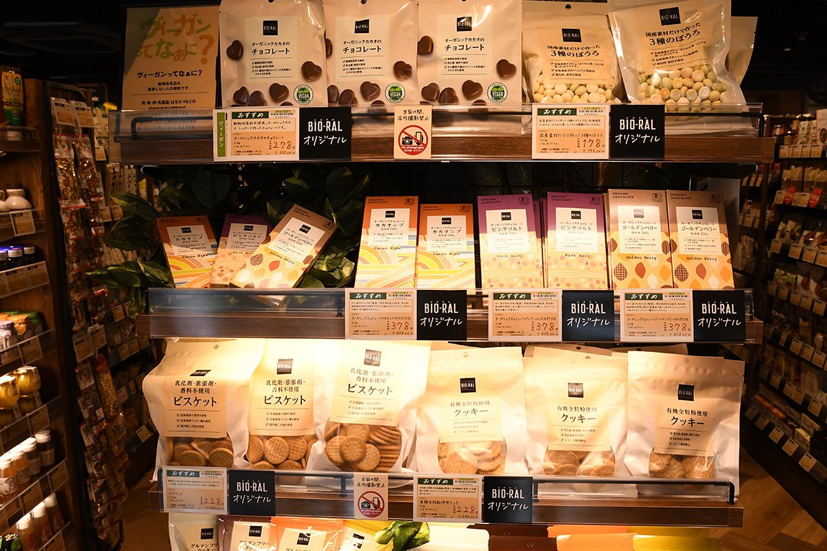 店内はプライベートブランド「BIO-RAL」をはじめとして、自然の恵みをいかしたオーガニック食品や健康にこだわった身体に優しい食品、オーガニック植物エキスを配合したコスメや自然由来の成分で作られたシャンプー、そして環境に優しい洗剤などこだわりの商品ばかり。日頃あまり深く考えずにスーパーで様々なものを買っていましたが、ビオラルの店内で様々な商品を見ていると、その商品が改めてどのような素材や環境で作られているのかちゃんと知りたくなりました。