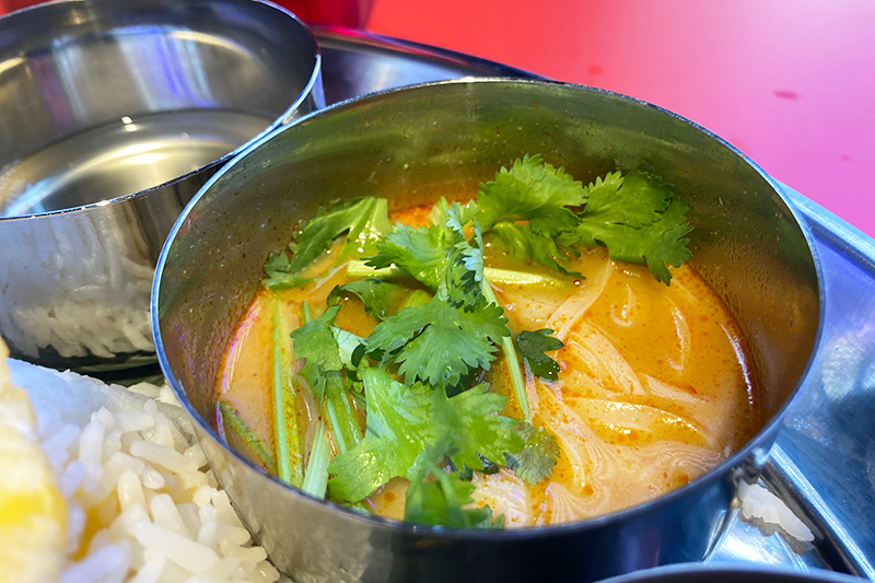 2022年3月30日に井の頭線高架下に開業した『ミカン下北』、ランチ実食レビュー第5弾は外観も店内もそして料理も完全にタイ!『タイ屋台 999(カオカオカオ)』(A-207)です。