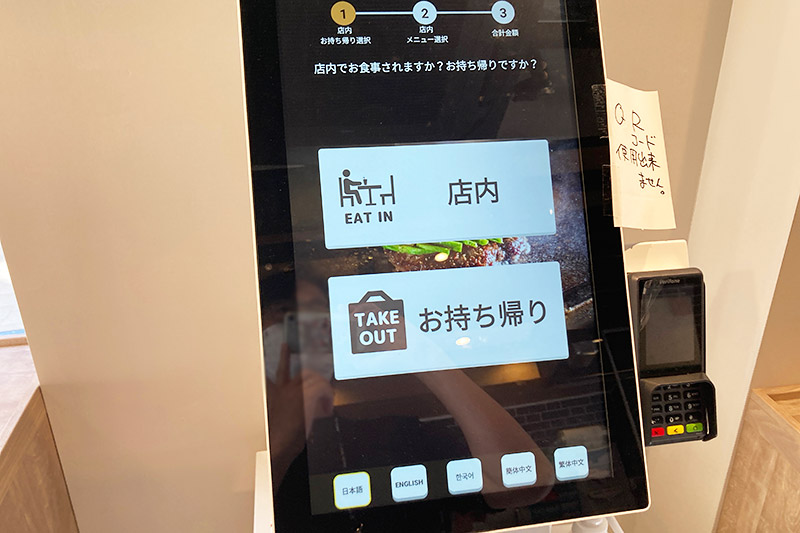 お店に入り、中央にある券売機で注文・会計をします。券売機写真の2枚目のようなスペシャルなバーガーばかりなのかなと思ったら、シンプルな「プレーンバーガー」や「チーズバーガー」といったメニューもあります。それぞれ、セットドリンク付きの値段になります。