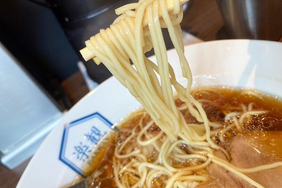 注文したのは「琥珀」950円(税込)、木桶仕込みの一等醤油を使った楽観を代表する醤油ラーメンです。