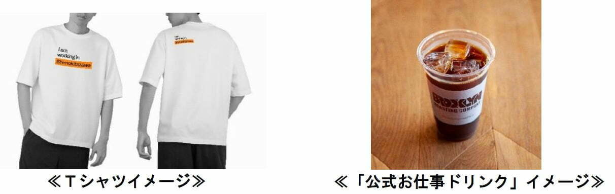内容: 下北沢に働きに来た人が、自身の名刺と交換できる共通Tシャツを1週間限定で無料配布します。期間中は下北沢で働く際にTシャツの着用を呼びかけ、Tシャツを着用した人が街に溢れることで、“下北沢で働く”を実感できる1週間を目指します。