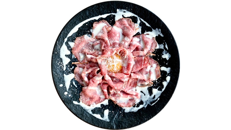 - ザ旨いもんバルコラボthe肉丼の店「赤身ローストビーフのチーズカルパッチョトリュフ添え」