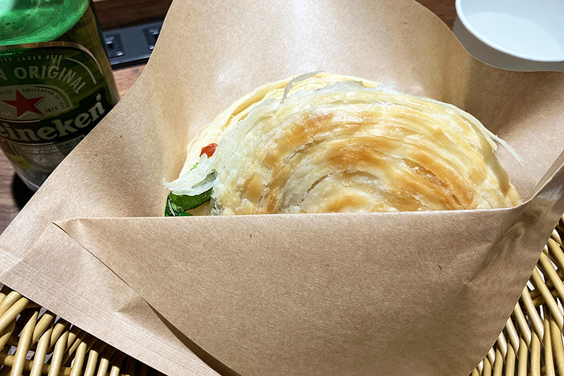 ローガモ自体このお店で知り何度か食べましたが、とーってもクセになる食感なんですよ。サクサク? パリパリ? うーん、パリサクってのがもっとも近いかも、パイ生地の食感が他にはないハンバーガーです。