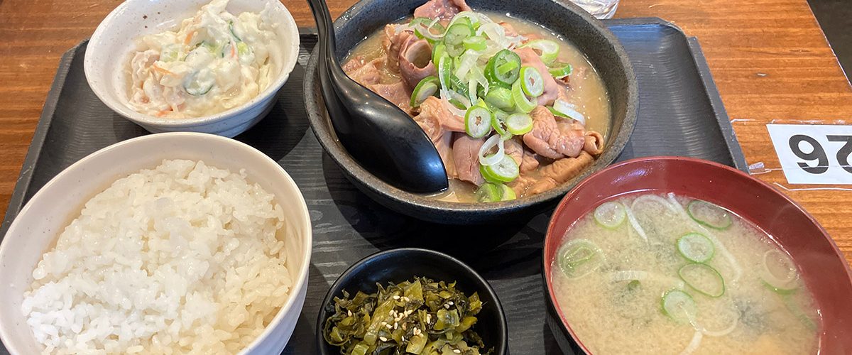 もつ煮はもちろんですが、ポテサラや味噌汁と全てがご飯に合うので、ご飯が足らなくなるーー。ちなみに、サイドメニューとしてライス大盛りやおかわりが+100円でできます。他にも、納豆・キムチ・冷奴(小)・塩辛(小)がすべて100円でつけることができます。