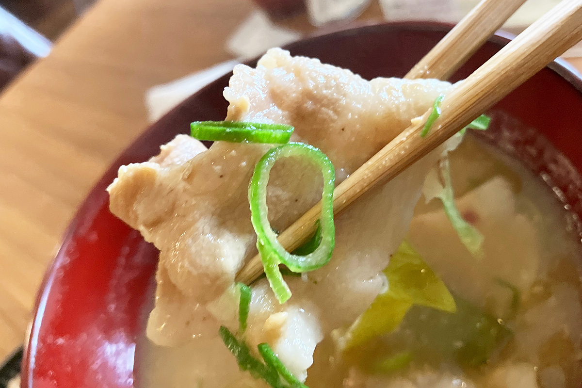 今までは2種類のお味噌から豚汁が選べる「とん汁定食」オンリーでしたが、新たにおにぎりと豚汁のセットが加わり、さらに定食は豚汁とごはんセットに変わりよりリーズナブルな価格に変更されました。とん汁については1種類で、月替わりでお味噌や季節に応じて具材が変更されるとのことです。