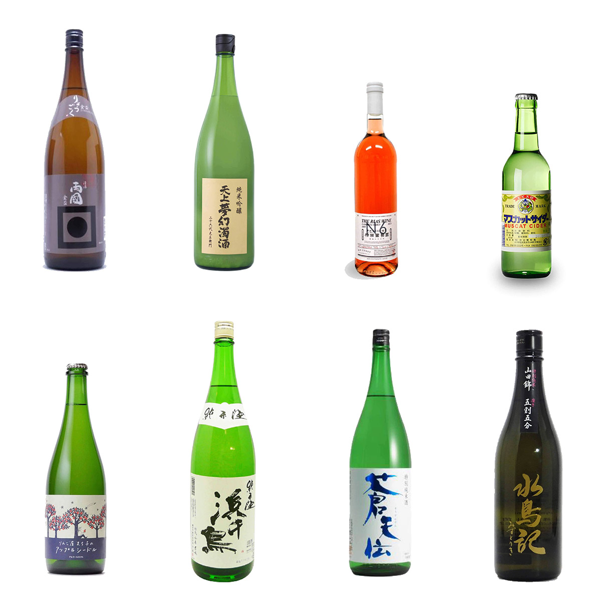 りんご屋まち子のアップルシードル(シードル)、浜千鳥(純米酒)、蒼天伝(特別純米酒)、水鳥記 山田錦(特別純米酒)