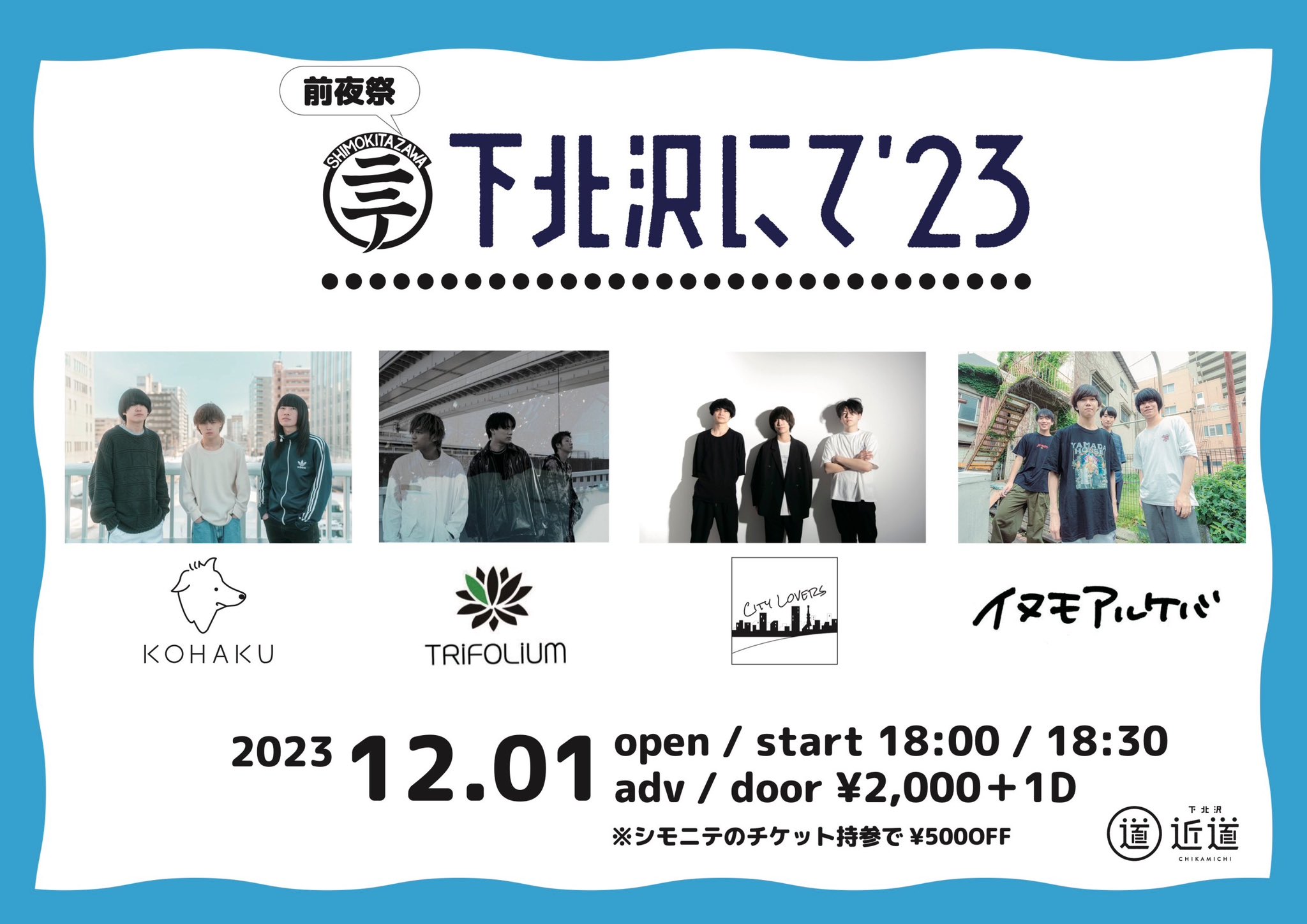 さらに、イベント前日となる12月1日(金)18時半からは近道で「下北沢にて’23 前夜祭」、翌日となる3日(日)18時からは近松にて「下北沢にて’23 後夜祭」も開催されます。