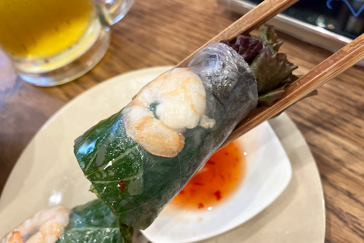 +300円でセットにでき、生春巻きとはす花茶がセットに。もし、初めてチョップスティックスさんに来られたのなら、ぜーったいにセットにしてください。サッパリとしたはす花茶に、まさにベトナムの味わいの生春巻きも、ぜひご賞味ください!