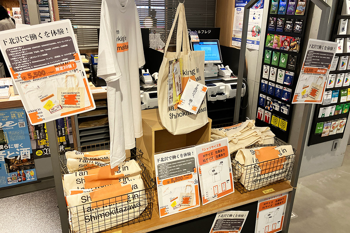 下北で働いてみるセットを購入し、「I am working in Shimokitazawa as しもブロキュレーター」、そんな1日が始まる。夜7時からは飲み会です、このままこのTシャツで参加します。