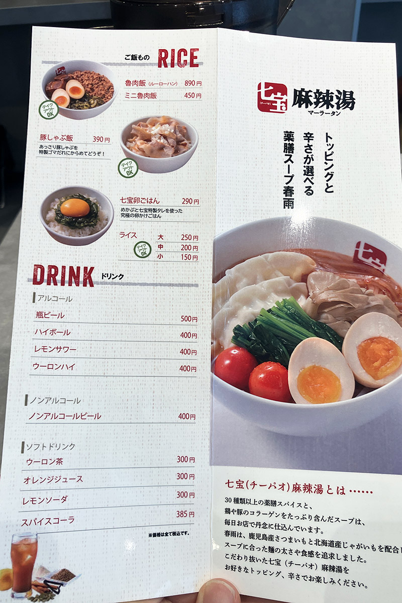 『七宝麻辣湯』は、2007年に渋谷で創業し日本でいち早くマーラータンの魅力を広めてきた専門店。ラーメン評論家として有名な石神秀幸さんがシンガポールで出会い、本場中国で200件以上食べ歩き研究した麻辣湯。ぜひ、一度味わってください! ちなみに、先にオープンしたあのお店の麻辣湯とは全く別物と考えた方がいいです。というか、今年は確実に麻辣湯が来ますね!!