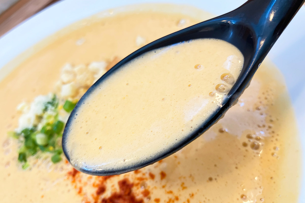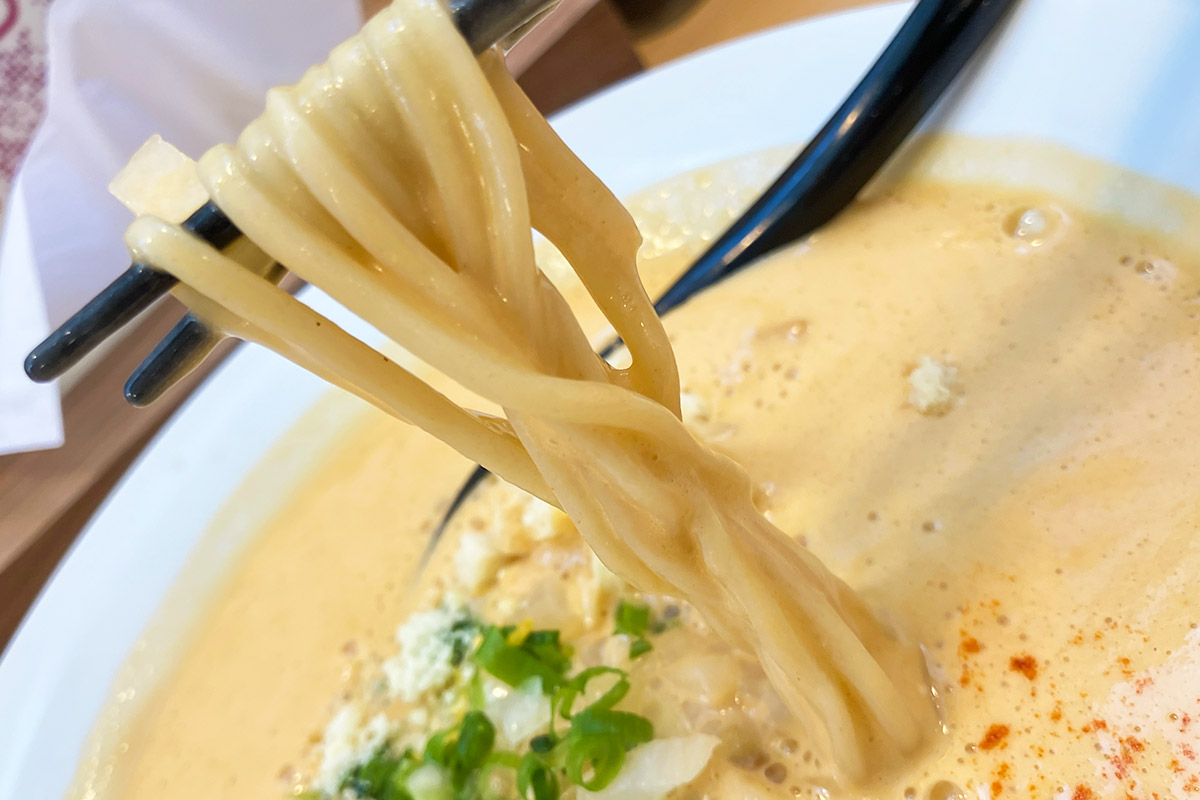 麺を持ち上げれば、エスプーマ状のスープがたっぷり絡んでくる。オマール海老の味わいを纏った麺の美味しいこと。このお店でしか味わうことのできない、唯一無二のラーメンです。