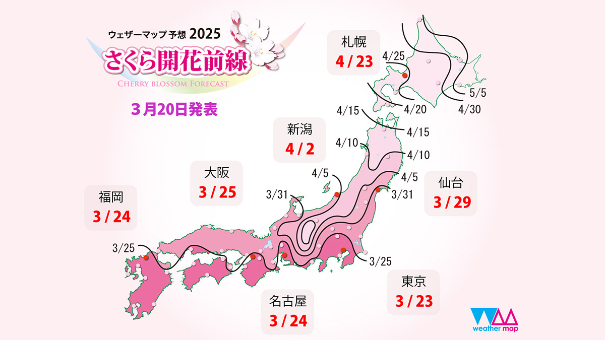 ちなみにウェザーマップの「さくら開花予想2025」では、開花日が23日になっていたので(1週間前は22日でした)、バッチリ合いましたね。尚、満開予想は27日で、今週の気温を考えればほぼ間違いないと思います。というわけで、3月最後の週末は満開で迎え絶好のお花見日和となりそうです。