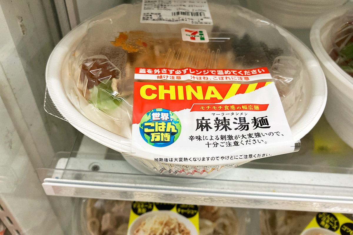 セブンイレブンがやっていた“世界ごはん万博”という企画で出していた「麻辣湯麺」、これがガチだった。スープの味わいや具材も当然ながらダントツ、味わい的にはチーパオともヨウゴクフとも違うオリジナリティ溢れる一品。特徴的なのは幅広麺だけど、ぶっちゃけこれは食べづらい、でも雰囲気は出てるよなー。
