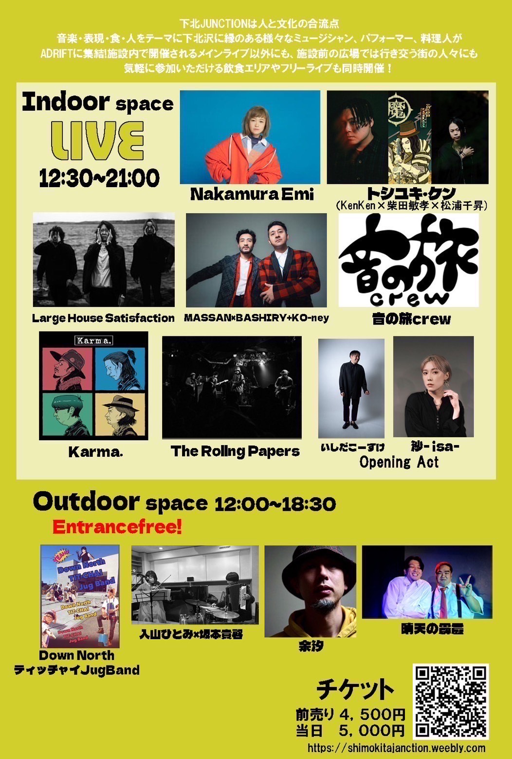 出演:NakamuraEmi / トシユキ・ケン(KenKen × 柴田敏孝 × 松浦千昇) / Large House Satisfaction ​/ MASSAN × BASHIRY / 音の旅crew / Karma. / The Rolling Papers ​/ いしだこーすけ(OA) / 沙-isa-(OA) ​