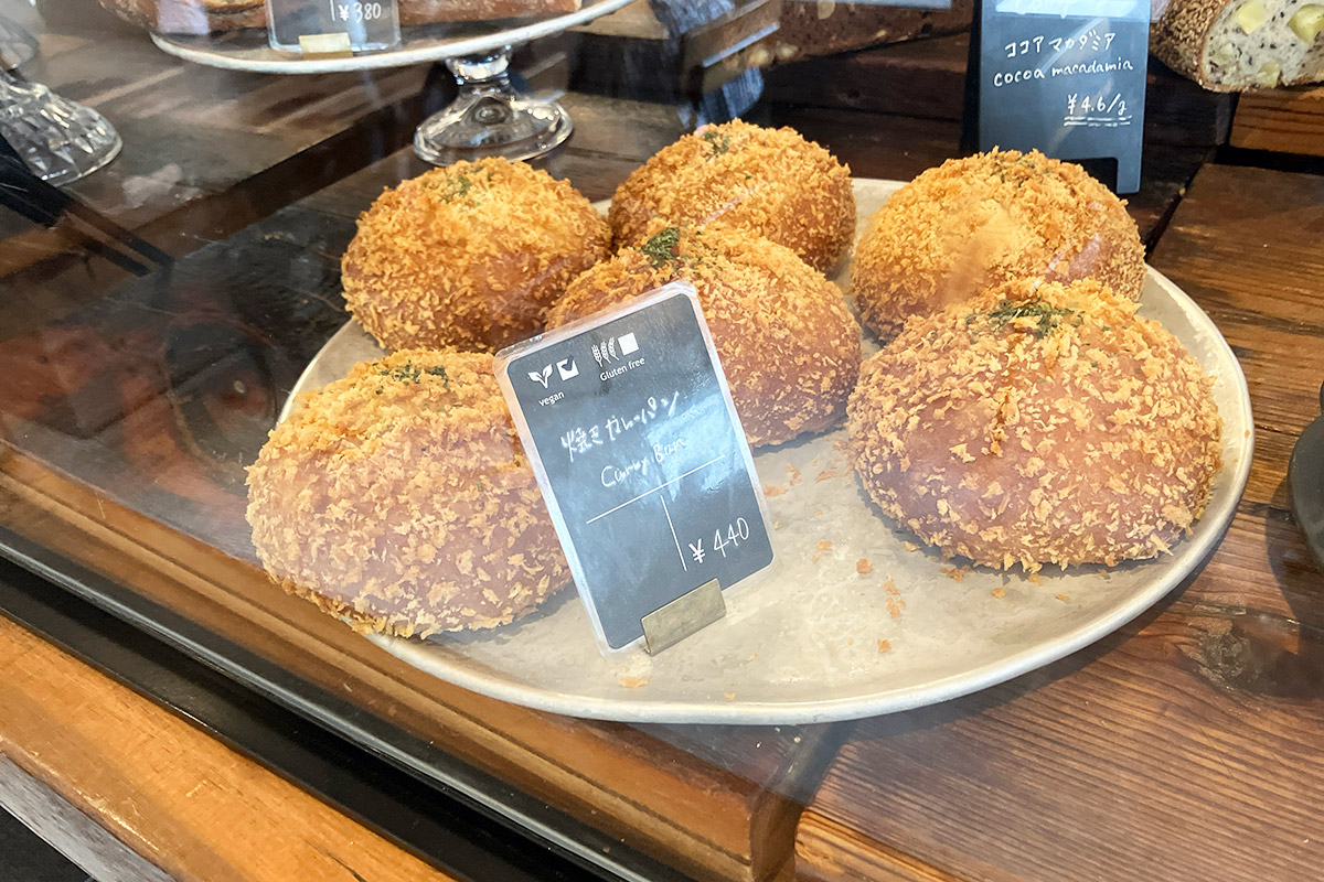 一口食べてまず最初に思ったのは、本当にこれがヴィーガンなのか、ということ。パンの中には行っているカレー自体がとてもとても美味しく、動物性のものを一切使っていないとは信じられない味わい。カレーはもちろん自家製で、じっくり炒めた玉ねぎに隠し味のマンゴー、そして10種類以上のスパイスが使われ辛さは控えめですが深い味わい。一見、揚げているように見えて焼きカレーパンである点も、嬉しいですね。