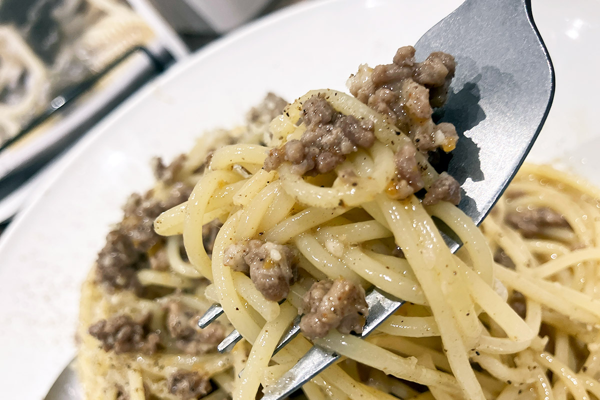 そう、いわゆる赤いミートソースとはひと味違う、あっさりとしつつも旨味が感じられる一品。しかも、大盛りのLサイズでも700円というハイコスパなパスタなのです!