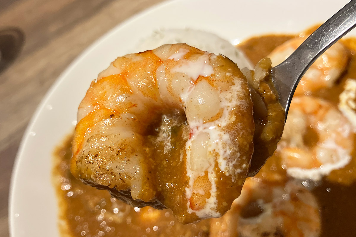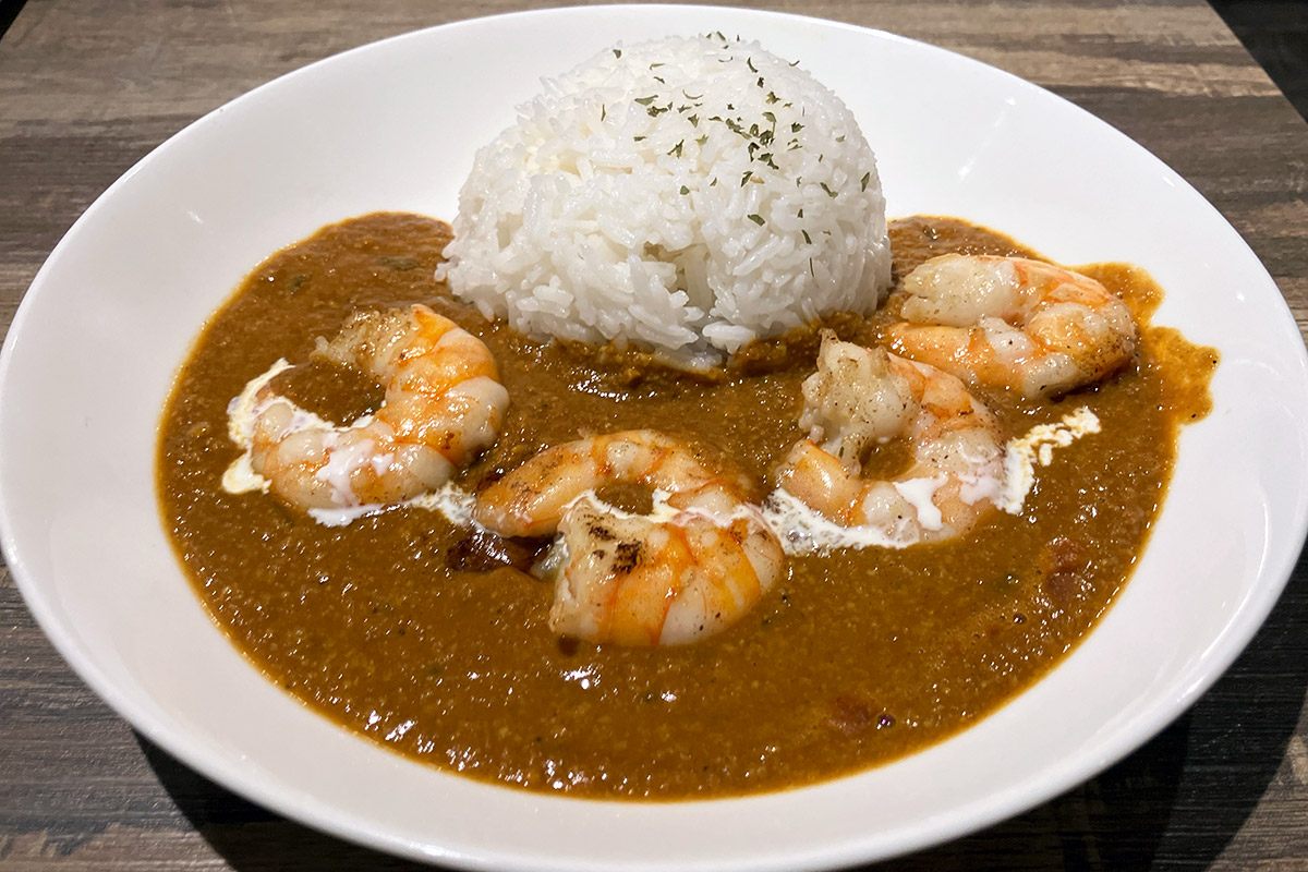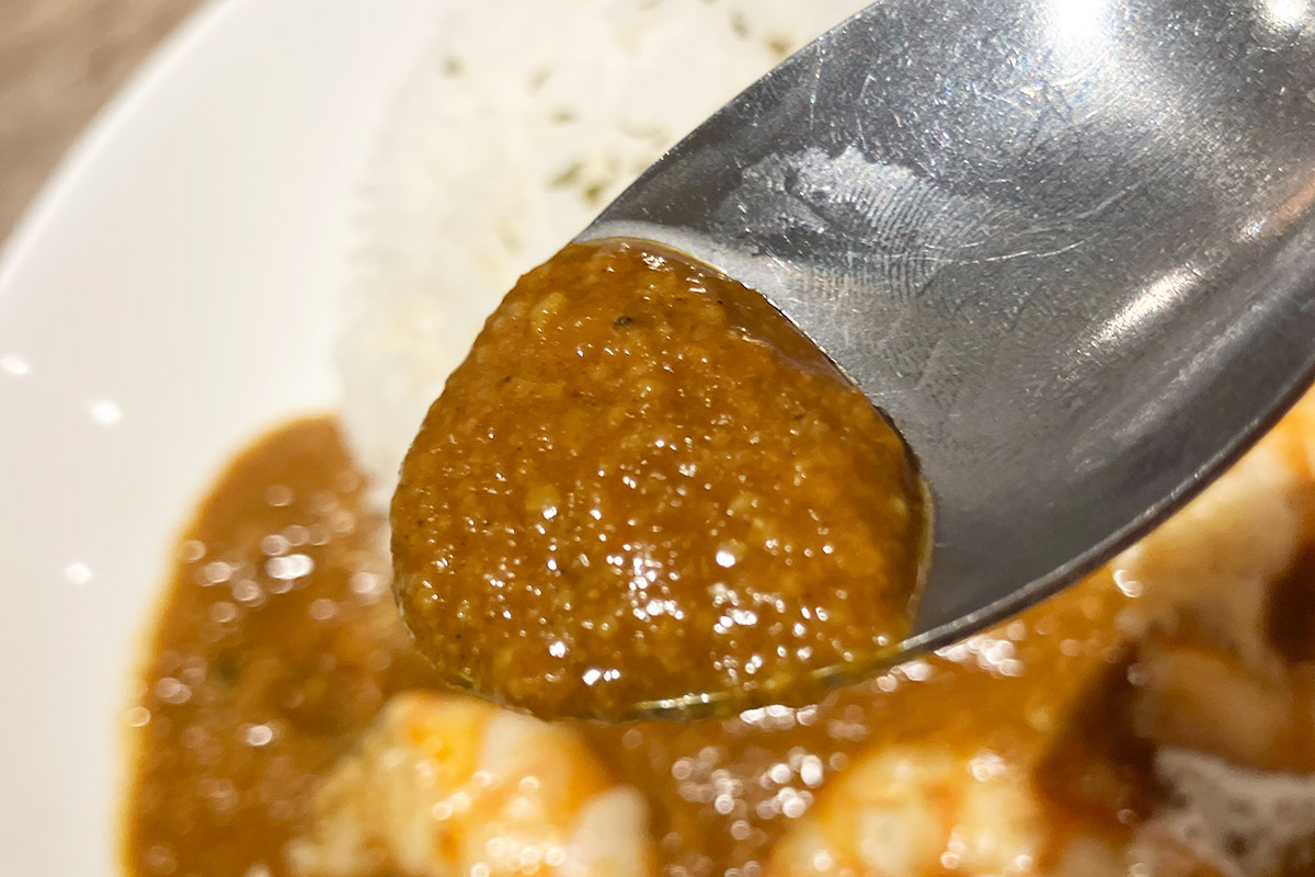 エビが載っているだけじゃないです、カレー自体にも濃厚なエビのうま味がたっぷり!