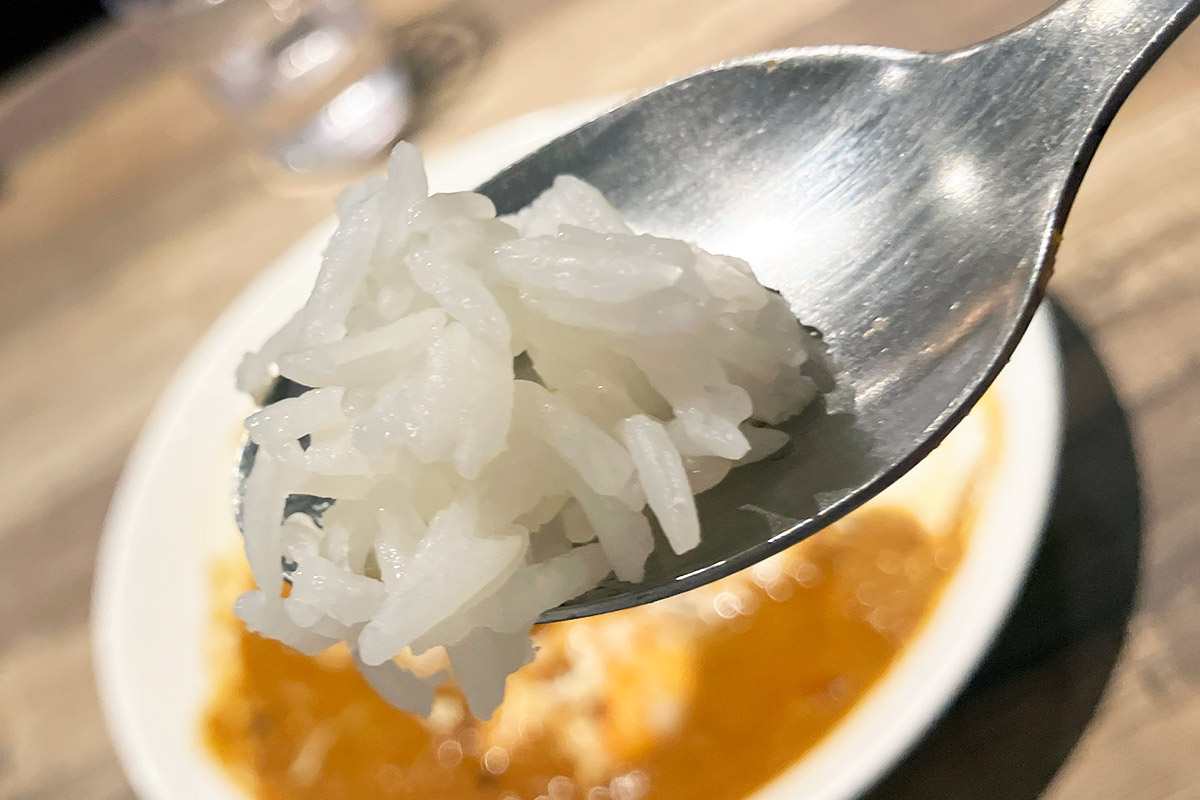 オーダーした「濃厚海老バターカレー」は、エビが載っているのみならずカレー自体にも濃厚なエビ出汁のうま味がたっぷり。10種類のスパイスを使い程よい辛さのカレーと、プリップリのエビの食感や旨味も加わり、まさにエビをまるごと堪能できるカレーです。ライスが長粒米なのもいいですねー。