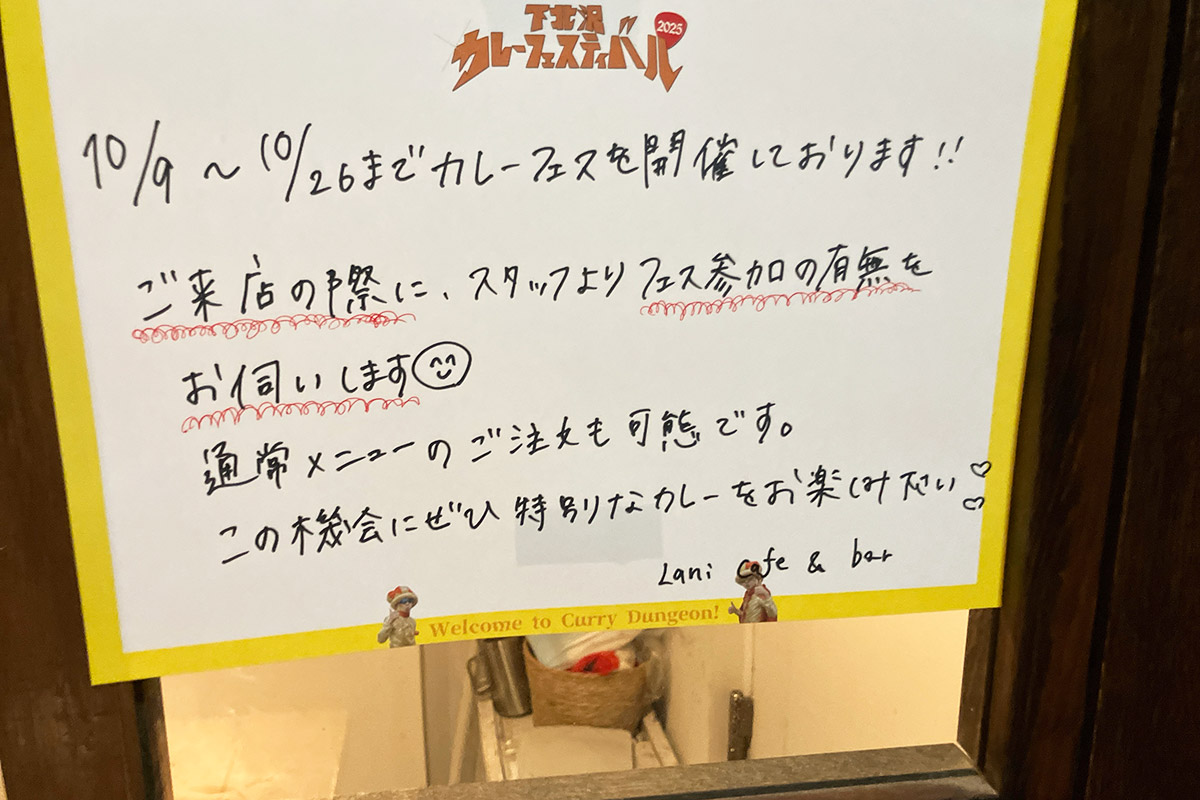 2025年10月9日(木)、下北沢最大となるフードイベント『下北沢カレーフェスティバル2025』がはじまりました。というわけで、初日からカレーを食べにGO! 1軒目に伺ったのは『Lani cafe&bar』です。