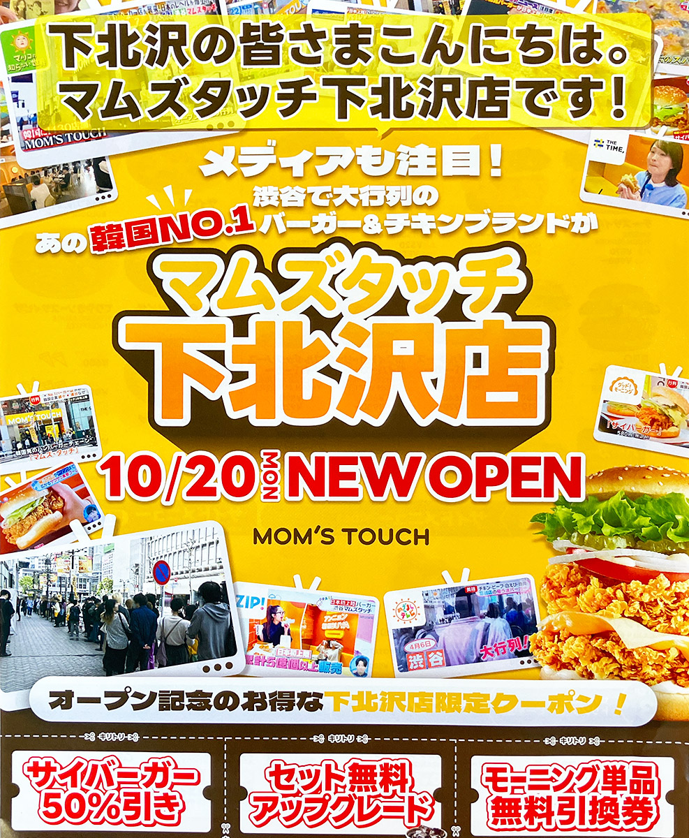 2025年10月20日(月)、下北沢南口商店街にグランドオープンした『MOM’S TOUCH(マムズタッチ) 下北沢店』。すでにプレオープンの模様はお伝えしましたが、オープン記念のクーポン付きチラシの配布と「マムズガチャ」キャンペーンの実施及び、さらに予約者限定特典の情報が解禁されましたのでお伝えいたします。