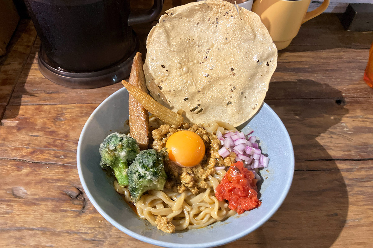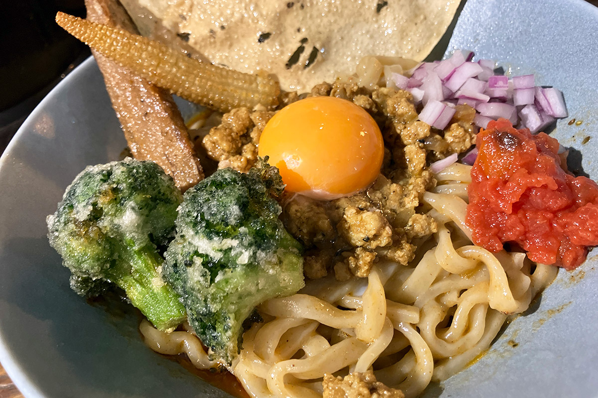 スパイスラーメン点と線.「月見キーマまぜそば TKM2025」1300円(税込)