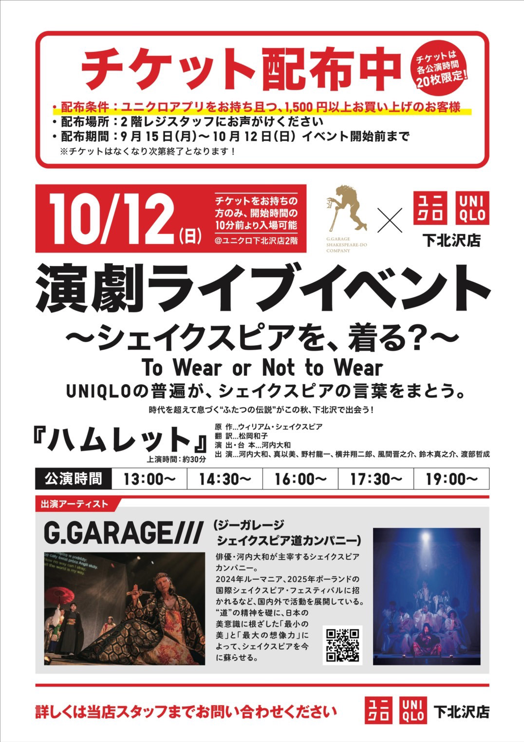 下北沢のいわゆる小劇場演劇はよく観ますが、シェイクスピアのような偉大すぎる古典作品は全く見たことがありません。現代の、しかも劇場ではなくユニクロの店内でいったいどのような事が起きるのか、とても気になります。