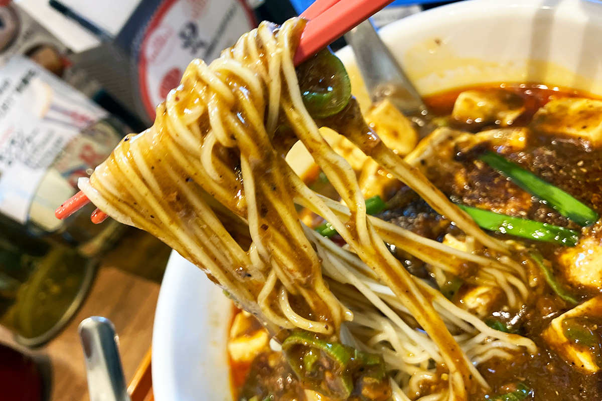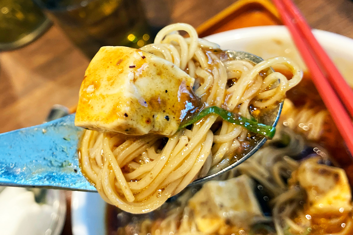 肝心の麺ですが、メッチャ熱々! 麻婆の餡がメチャメチャ熱いーーー!! 辛さと痺れについては担々麺とはちょっと違っていて、スープ自体はそこまで刺激が強いわけじゃないのでいい感じです。
