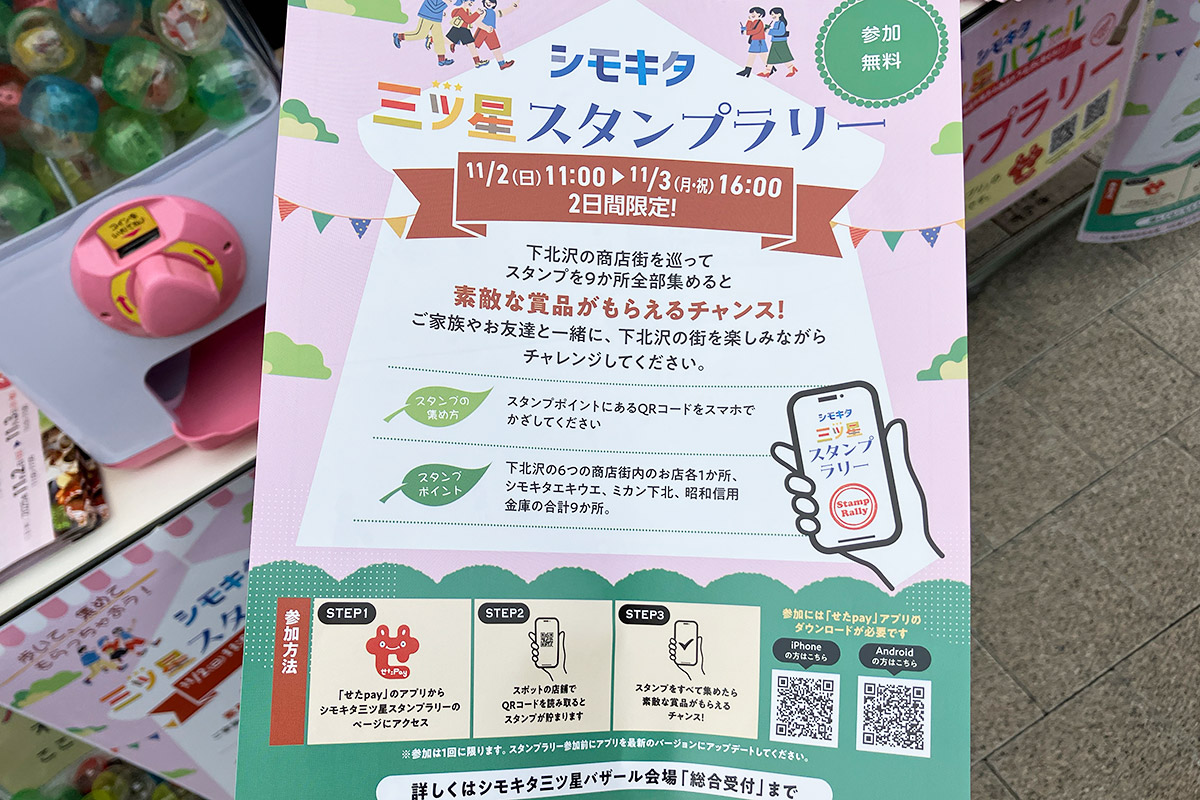 と、今年はこれも欠かせない! 三ツ星スタンプラリーに参加します!! スタッフの方に巡る目処を伺うと1時間とのことで、勝手にタイムアタックです。下北沢のローカルメディアとして、絶対的な数字をたたき出すのだっ(なぜ?)。