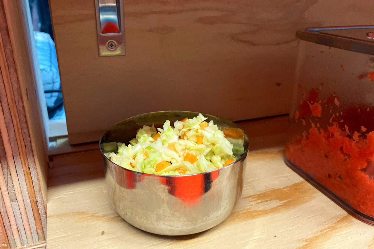 もちろん、ちょっぴりスパイスの効いた「コールスロー」100円(税込)も頼む。この小窓から提供される